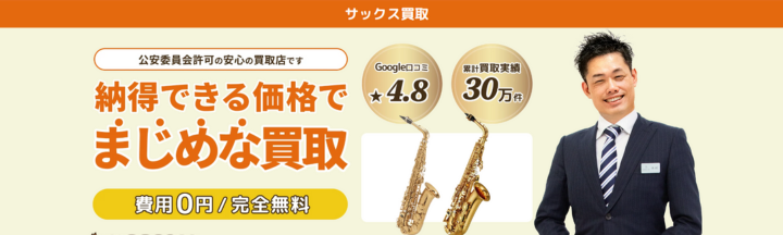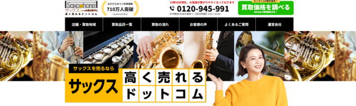 ホームページにはサックス買取の体験談も載っており、実績が豊富なところもおすすめポイントです。