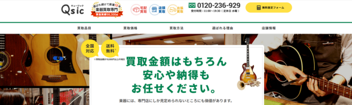 楽器販売も行う楽器専門の買取店Qsicは、在庫のすべてがQsicで買い取った楽器であることが大きな特徴です。