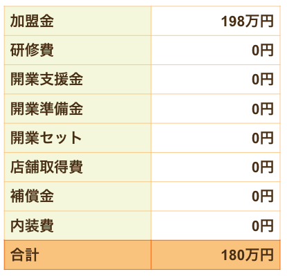 その他初期費用 本部資料等によれば、物件取得費や内外装費は不要。店舗型FCでは必須であるコストが削減されています。