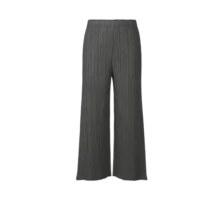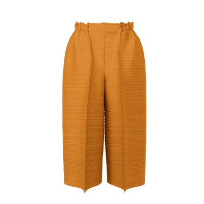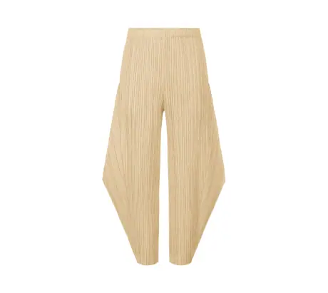 また、プリーツプリーズに限らずイッセイミヤケブランドはどれもシルエットが特徴的なものが多く、ふくらはぎ部分がふっくらしたデザインのボトムスは遊び心があってオフの日のファッションにオススメです。