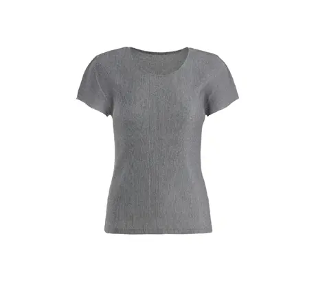 プリーツプリーズのトップスは胸元やウエストの凹凸に落ちる影と光沢感が相まって、女性のシルエットを美しく見せる魅力があります。