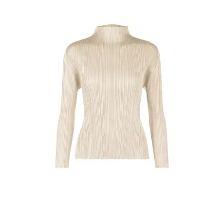 プリーツプリーズはハイネックデザインが多くみられ、ワンピースやジャケットと合わせる際のインナーとして非常に便利です。