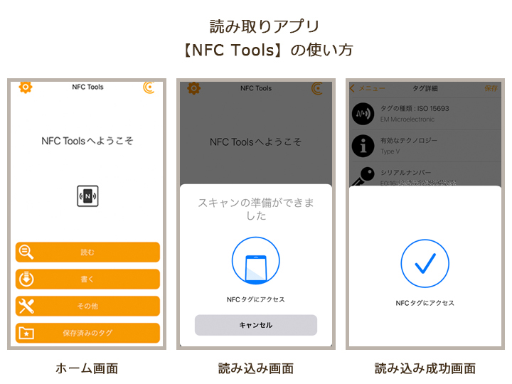 いくつかアプリはありますが、簡単に読み取ることができたのはNFC Toolsというアプリ 。筆者のスマホはiPhone8、他のスタッフがiPhone12で、どちらも問題なく利用できたことを確認しております。