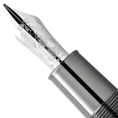 18金のペン先にはノートルダム大聖堂のガーゴイルが刻まれています。