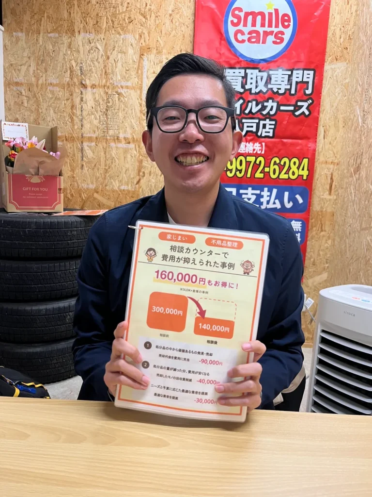 初めての事なので不安な事ばかりでしたが、全部相談できた事でとてもイメージが湧いて来ました。今すぐではないのですが、来年中には進めていきたいという内容でご相談しました。店頭や出張で不用品の買取もお願いできるのでしてみようかと思います^_^